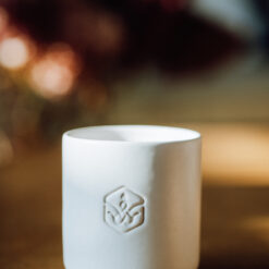 Свічка ручної роботи із соєвого воску в керамічній основі з дерев’яним ґнотом, яка додає настрою весняно-літній чи осінньо-зимовій порі